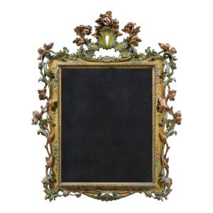Specchiera in legno intagliato, laccato e dipinto. Venezia, XIX secolo.