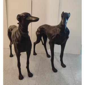 Sculture di cani levriero in bronzo patinato, maschio e femmina, in ottime condizioni, in piedi e in posa di guardia. Manifattura curata e realistica. Rappresentati in dimensioni reali e straordinaria ricchezza di particolari caratteristici della razza..( coda , orecchie, diaframma ecc..). Spese di spedizione da concordare in fase di acquisto. Imballaggio professionale e spedizione veloce e sicura garantiti. Si accetta pagamento con bonifico bancario
