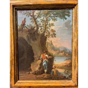 dipinto raffigurante paesaggio prima meta' del 700' attribuito a francesco Foschi 1710.1780