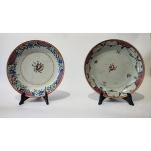 Raffinata coppia di piatti in porcellana cinese da esportazione. Questa coppia di piatti, appartenente alla c.d. "Famiglia Rosa", sono caratterizzati da motivi floreali e geometrici, che ne esaltano la raffinatezza. Si tratta di una coppia di piatti di grande gusto e raffinatezza, probabilmente destinati al mercato Persiano, in grado di donare un tocco di classe ed antichità a qualsiasi ambiente. Manifattura cinese, ascrivibile al periodo Qianlong, della seconda metà del XVIII secolo.