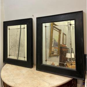 Coppia di cornici in ebano con specchi