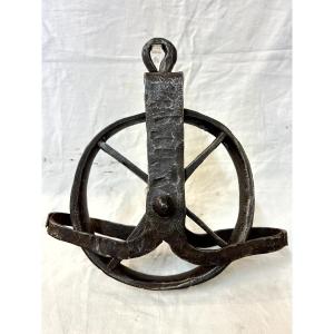 Carrucola in ferro forgiato bollito e assemblato di forgiatura molto arcaica e primitiva. Questo tipo di manufatti erano presenti molto spesso presso i pozzi dei conventi. Toscana secolo XV
