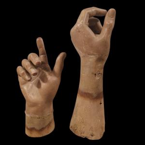 Coppia di mani in legno dipinto. Napoli,XVIII secolo.