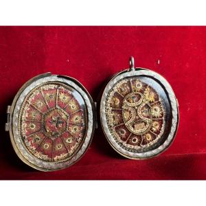 "Reliquiario a medaglione a doppia faccia con 27 reliquie "