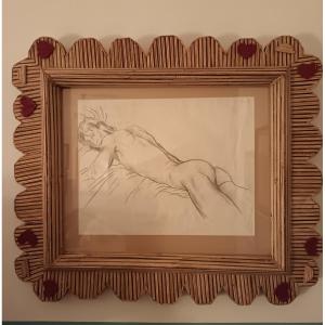 Il disegno è incorniciato da una splendida cornice francese degli anni '50, realizzata in bamboo, che aggiunge un tocco di esotismo e raffinatezza inaspettata. Questa combinazione di un'opera del 1920 con una cornice mid-century crea un contrasto affascinante, rendendo il pezzo estremamente versatile per ambienti sia classici che contemporanei.
