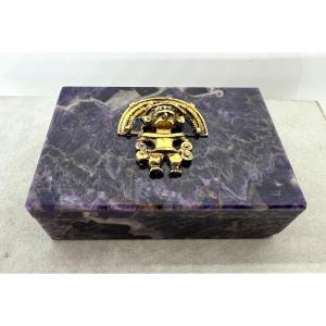 Scatola in ametista con applicazione in argento dorato Messico XX sec. 8 cm x 11,5 cm Spedizione con corriere UPS DHL DPD Posteitaliane Pagamento a mezzo bonifico bancario o Paypal Contattatemi per ulteriori info