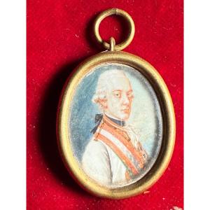 Miniatura su avorietto rappresentante il Granduca Pietro Leopoldo di Lorena in cornice di ottone dorata