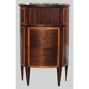 Comodino mezzaluna Luigi XVI in mogano e ciliegio con serrandina, Veneto, fine XVIII secolo