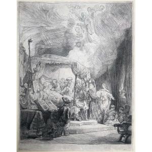 Rembrandt, Il transito della Madonna, stampa antica terzo stato da lastra 1639