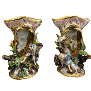 Coppia di grandi vasi in porcellana Vecchia Parigi, Francia 1830-1860.