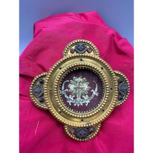 Reliquiario della Santa Croce in bronzo dorato e cristalli colorati
