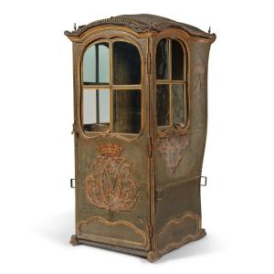 Portantina in legno e tela dipinta con monogramma coronato
