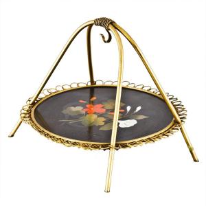 Vassoietto portasigari in bronzo dorato e pietre dure di epoca fine Ottocento e provenienza italiana.