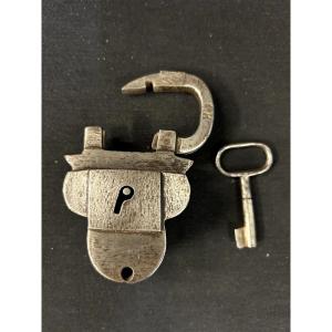 Lucchetto in ferro forgiato, forbito e assemblato tramite brasatura a rame completo di chiave originale e bollo della bottega esecutrice nella parte alta del manufatto.