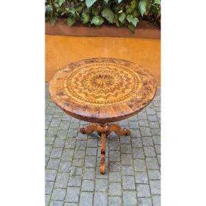 Tavolino di Rolo della seconda metà dell'800 in noce intarsiato.