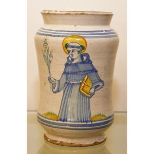 Albarello in maiolica di Laterza policroma raffigurante Sant'Antonio da Padova fine del XVII sec.