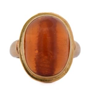 Elegante anello vintage anni ’60 realizzato in oro giallo 18 carati e impreziosito da un’ambra naturale taglio cabochon di circa 8,00 carati.