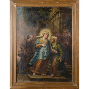 Dipinto olio su tela antico scuola italiana XVIII secolo -Visitazione