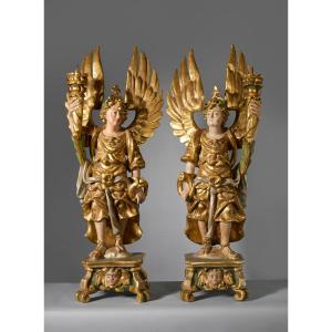Coppia di sculture raffiguranti Angeli portacero eseguita tra la fine del XVII e l'inizio del XVIII secolo.