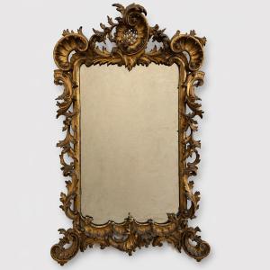 Antica specchiera del XIX secolo, realizzata in legno intagliato e dorato, caratterizzata da una linea elegante e armoniosa di gusto Luigi XV.