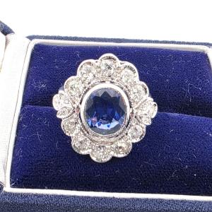 Anello in oro bianco 18kt con zaffiro centrale e diamanti a contorno