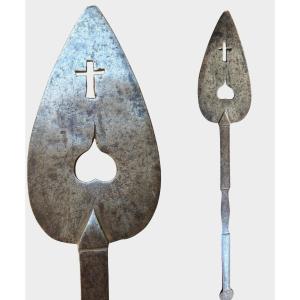 Rara spatola in ferro forgiato e traforato XVI secolo
