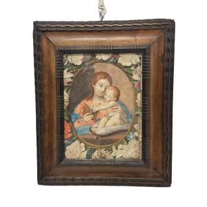 Anonimo del XVIII secolo, "Madonna con il Bambino in ghirlanda floreale"