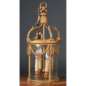 Lanterna antica, bronzo dorato, Stile Carlo X, Decori a festoni e foglie d'acanto, XIX sec